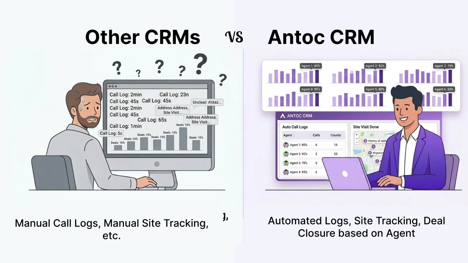 Antoc CRM is a modern, sales‑focused CRM designed exclusively for real estate brokers, agencies, and firms. It brings leads, calls, WhatsApp, projects, properties, and team performance into one fast, secure system.